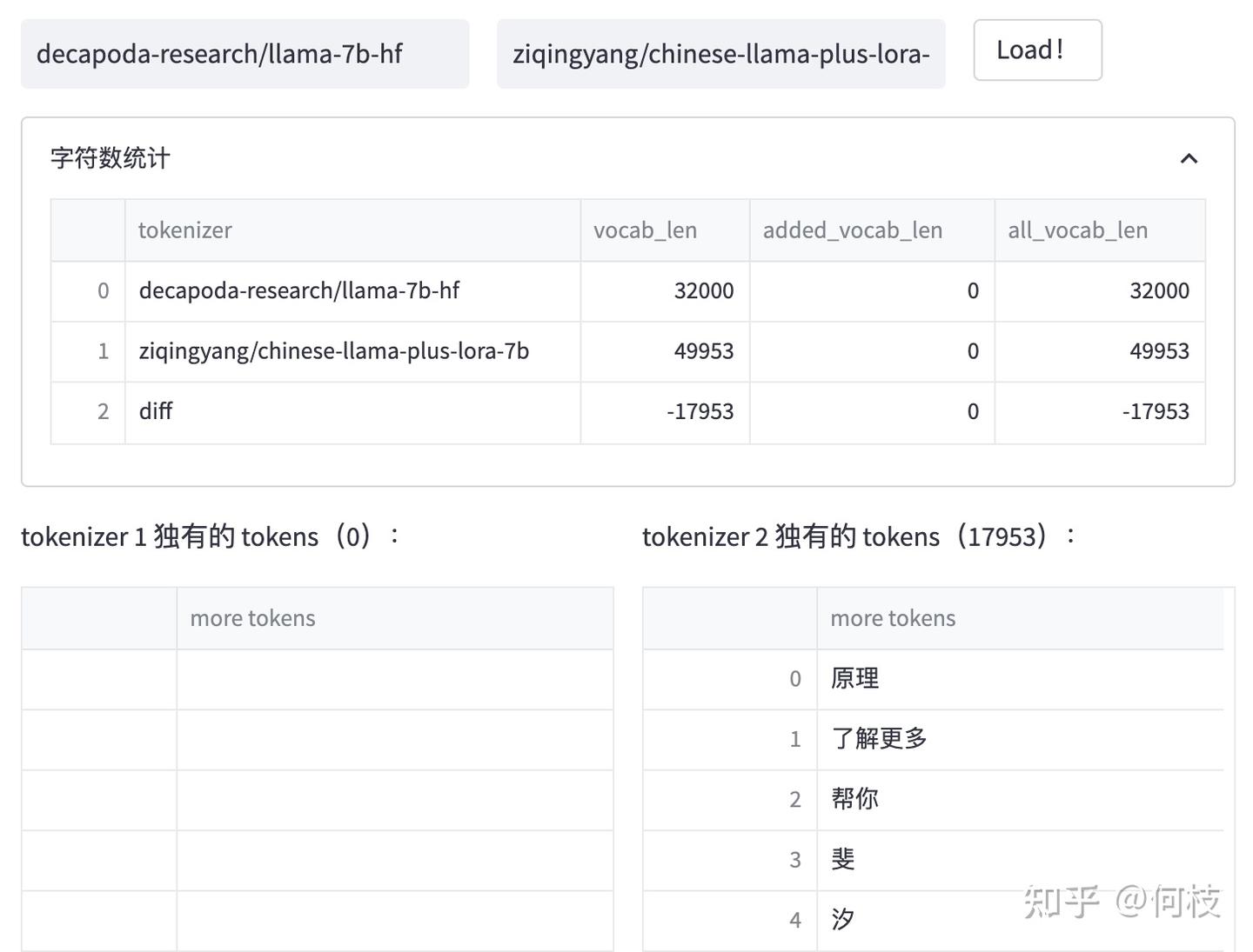 我们对比 [Chinese-LLaMA] 和 [LLaMA] 之间的 tokenizer 的区别: