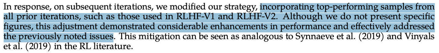 在 [Llama2 Paper] 中使用了这种方法,由于这是一个循环迭代的过程(Sample -> SFT -> Sample -> …),
