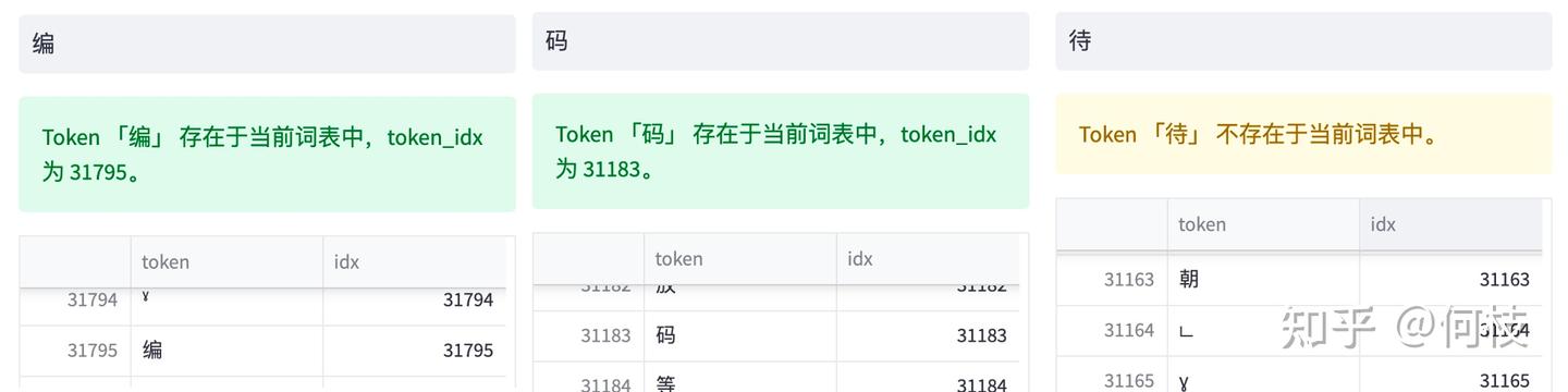 通过 token 查找功能,我们可以发现「编」「码」在词表中,但「待」不在词表中。