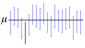 置信水平$1-\alpha$ 频率解释:在大量的区间估计观测值中,至少有$100(1-\alpha)%$ 含$\theta$,如下图所示,其置信度为0.95.