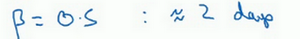 我们可以再换一个值试一试,如果$\beta$ 另一个极端值,比如说 0.5,根据右边的公式($\frac{1}{(1-\beta)}$),这是平均了两天的温度。