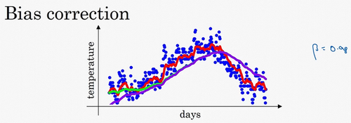 你学过了如何计算指数加权平均数,有一个技术名词叫做偏差修正,可以让平均数运算更加准确,来看看它是怎么运行的。
