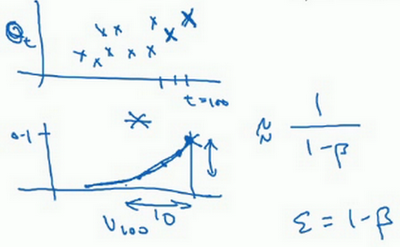 那么$v_{99}$ 什么?我们就代入这个公式($v_{99} = 0.1\theta_{99} +0.9v_{98}$),所以: