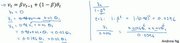 同样的公式,${{v}{t}}=\beta {{v}{t-1}}+(1-\beta ){{\theta }_{t}}$