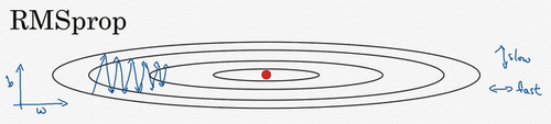 所以,你想减缓$b$ 向的学习,即纵轴方向,同时加快,至少不是减缓横轴方向的学习,RMSprop算法可以实现这一点。