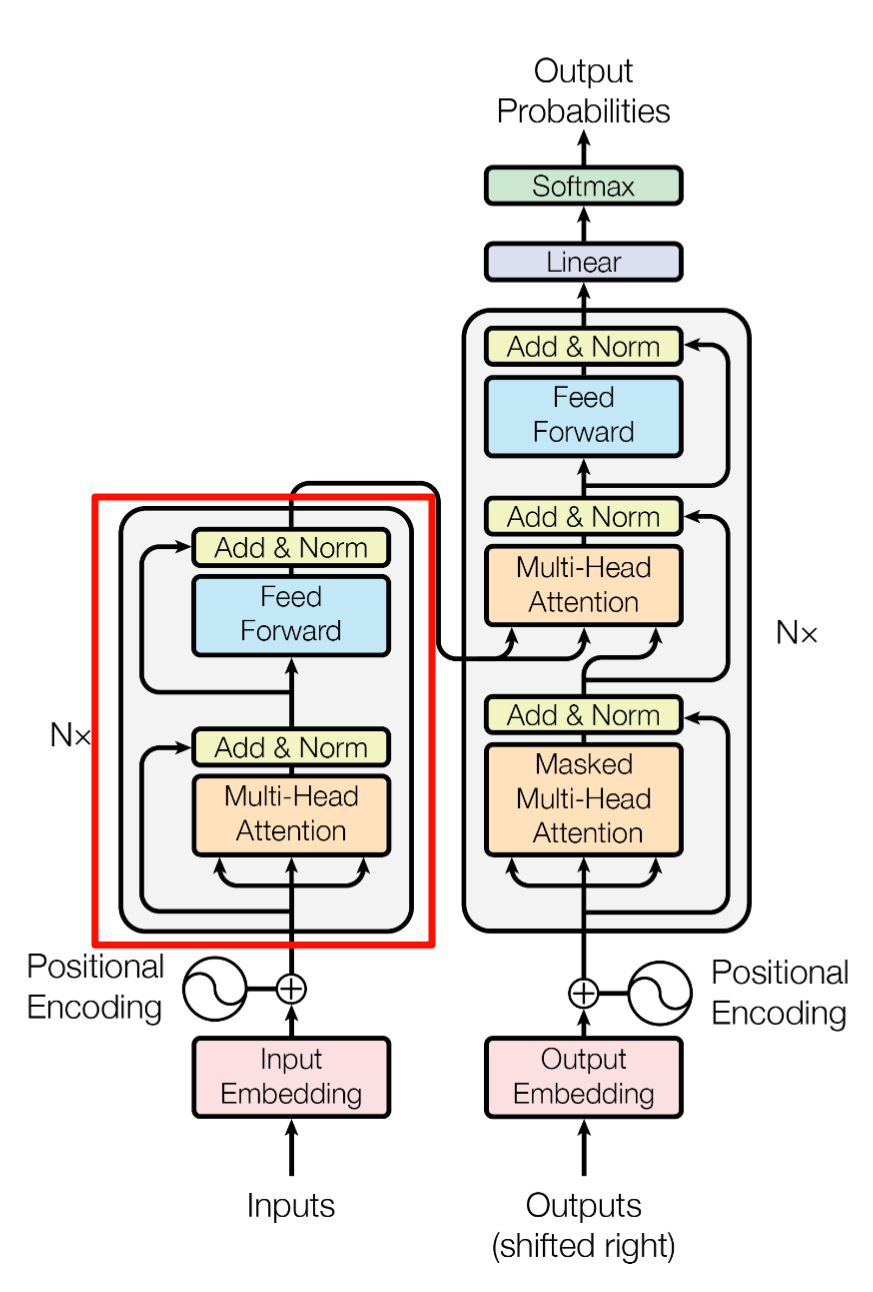 上图红色部分是 Transformer 的 Encoder block 结构,可以看到是由 Multi-Head Attention, Add & Norm, Feed Forward, Add & Norm 组成的。刚刚已经了解了 Multi-Head Attention 的计算过程,现在了解一下 Add & Norm 和 Feed Forward 部分。
