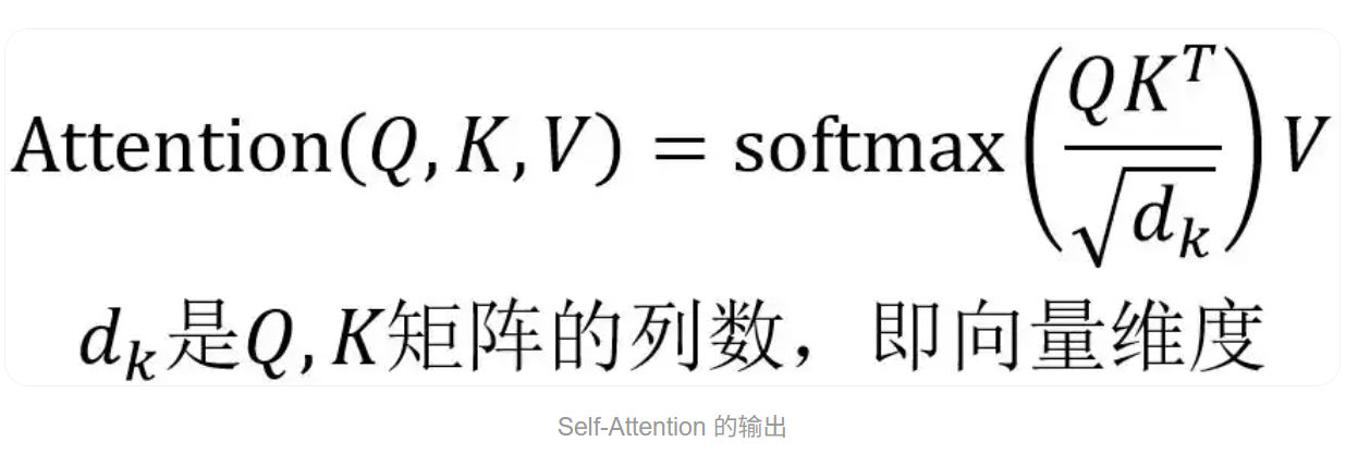 得到矩阵 Q, K, V之后就可以计算出 Self-Attention 的输出了,计算的公式如下: