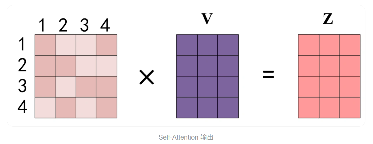 得到 Softmax 矩阵之后可以和V相乘,得到最终的输出Z。