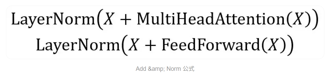 Add & Norm 层由 Add 和 Norm 两部分组成,其计算公式如下: