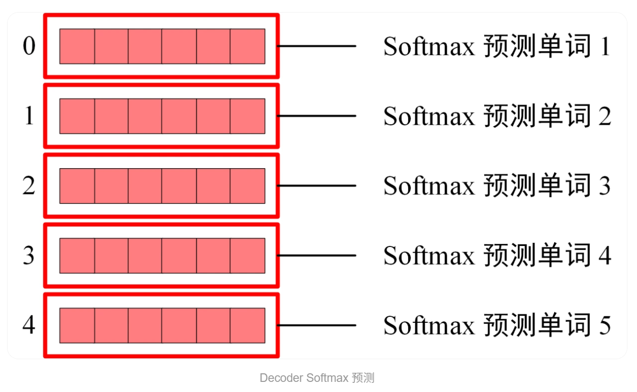 Softmax 根据输出矩阵的每一行预测下一个单词: