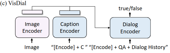 视觉对话任务在自然会话设置中扩展了 VQA,其中模型不仅需要基于图像-问题对预测答案,还需要考虑对话历史和图像的字幕。作者对预训练模型进行了修改,如下图12所示。图片先经过 Image Encoder 得到视觉表征,Caption Encoder 的输入是字幕和 [Encode] token,并通过交叉注意力建模它们。Dialog Encoder 的输入是 [Encode] token,问题 QA 和对话历史。使用 ITM 损失进行二分类式的训练,以区分问题的答案是真还是假。