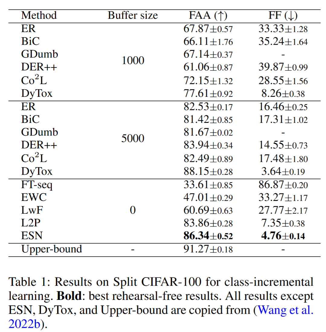 - 所提出的 ESN 在四个大规模基准数据集上设置了新的最先进性能,并构建了一个具有挑战性的跨领域类别增量学习基准。